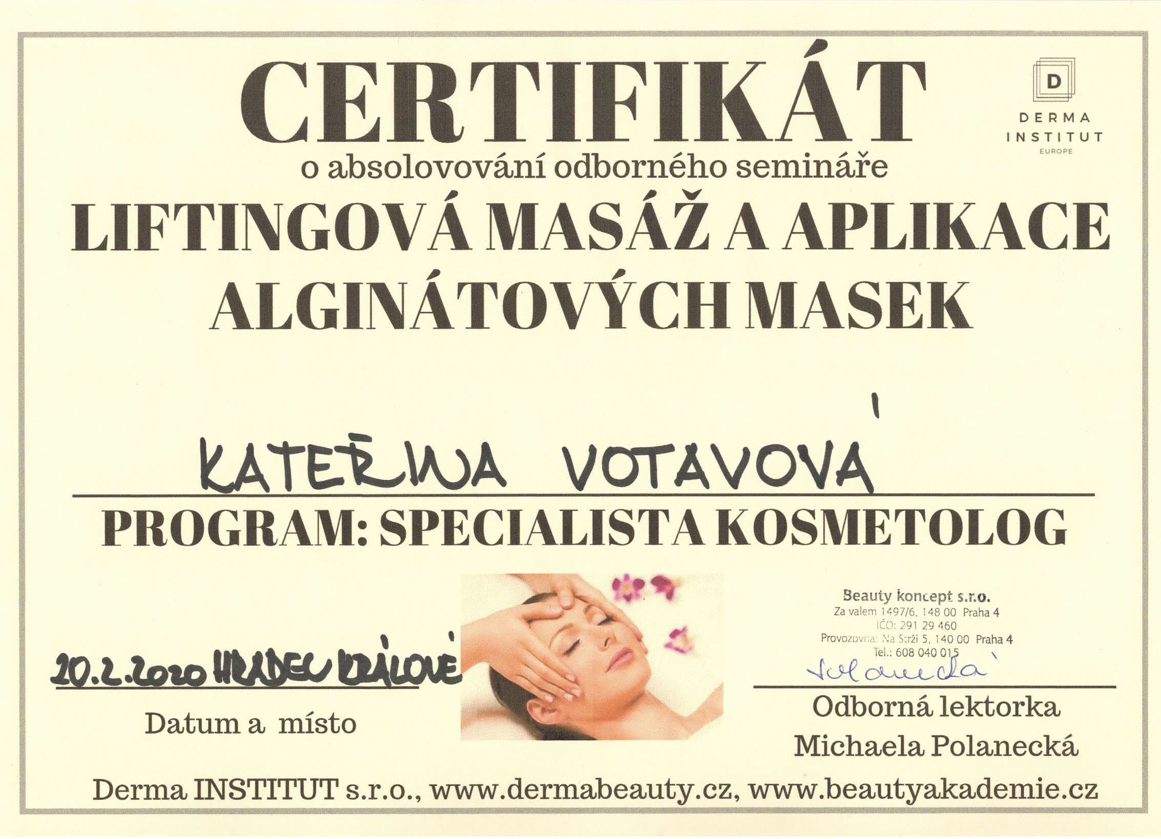 Liftingová masáž & aplikace alginátových masek